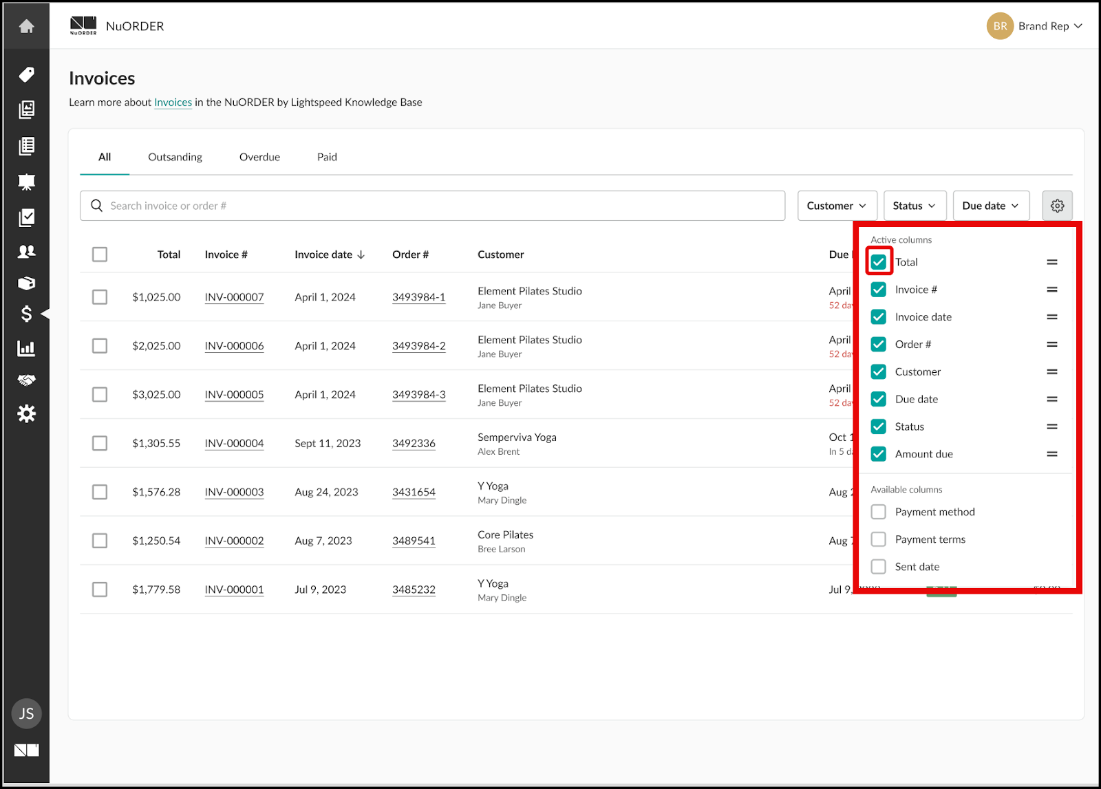 Brands using Lightspeed Payments or their own payments processor can review and manage invoices directly within NuORDER.