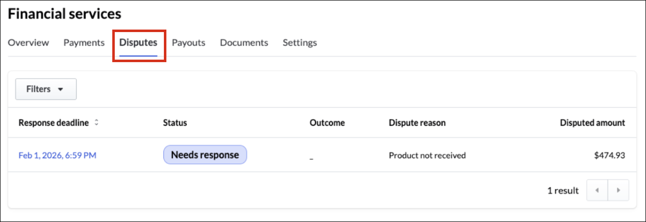 From the left navigation menu, go to Payments>Transactions and Deposits. Select the Disputes tab.