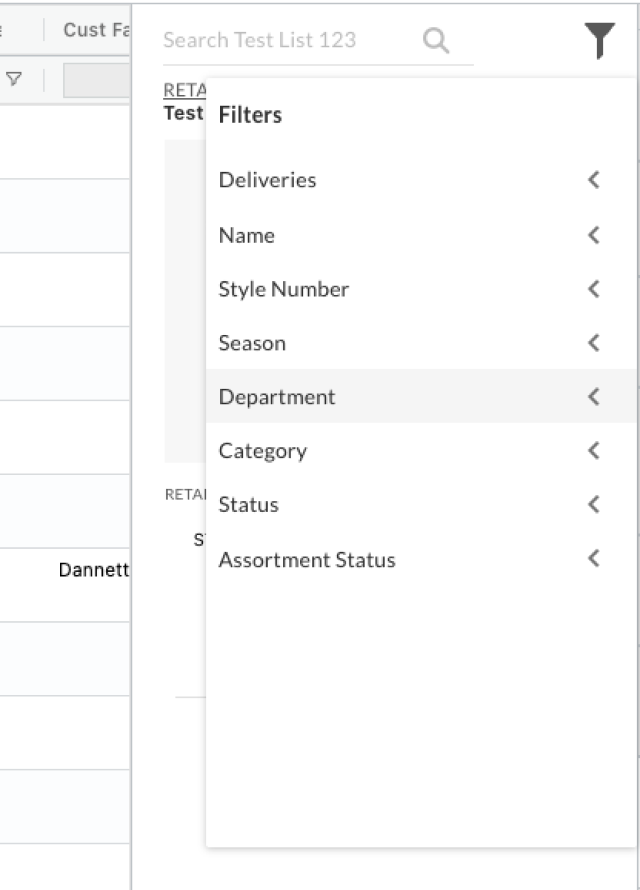 Filters: This tab combines all the filters from the various linesheets you selected. Use this to further filter the products on the right side of the modal.