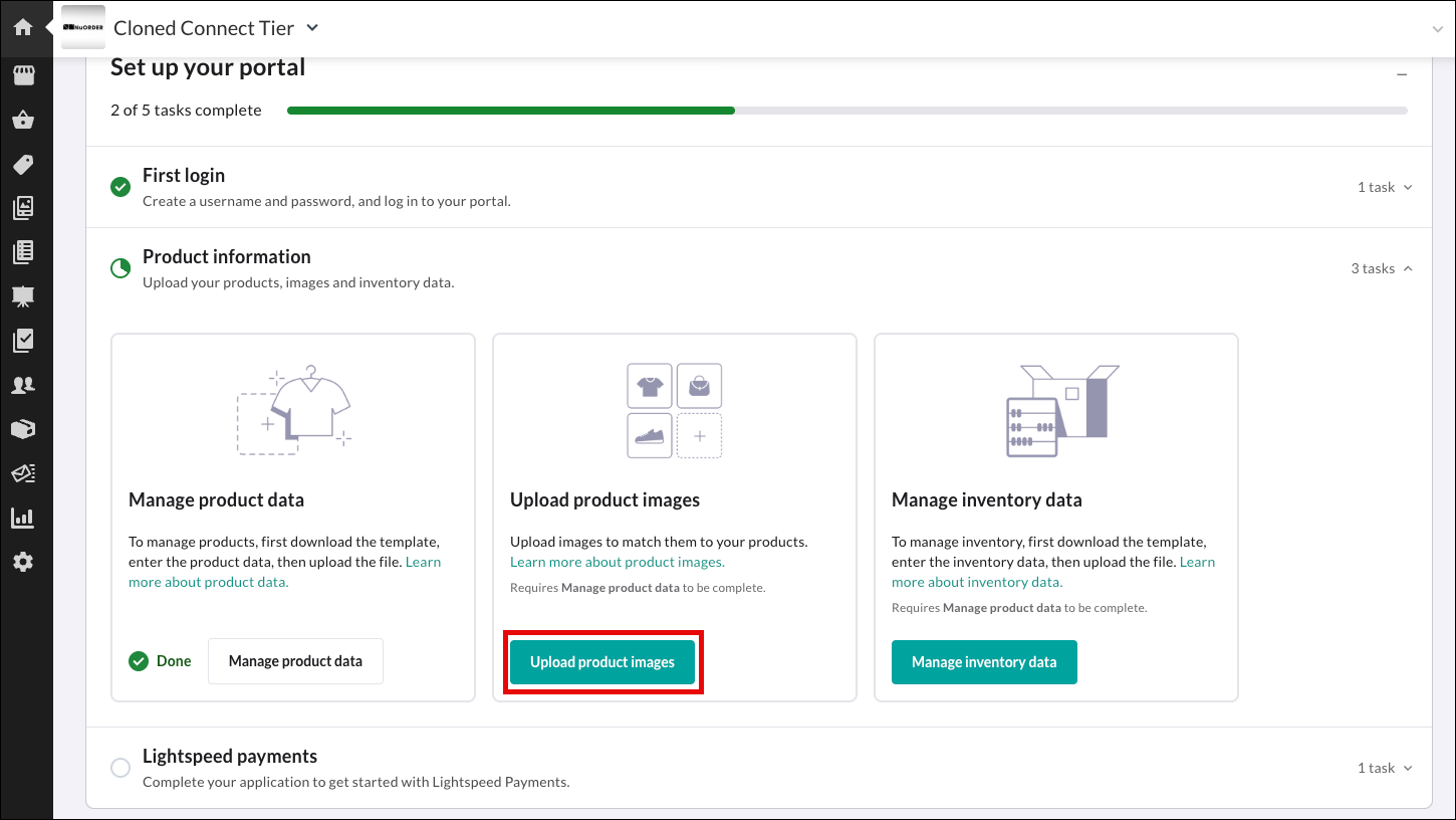 Note: You must complete the Manage Product data step before you can upload images to your products.
