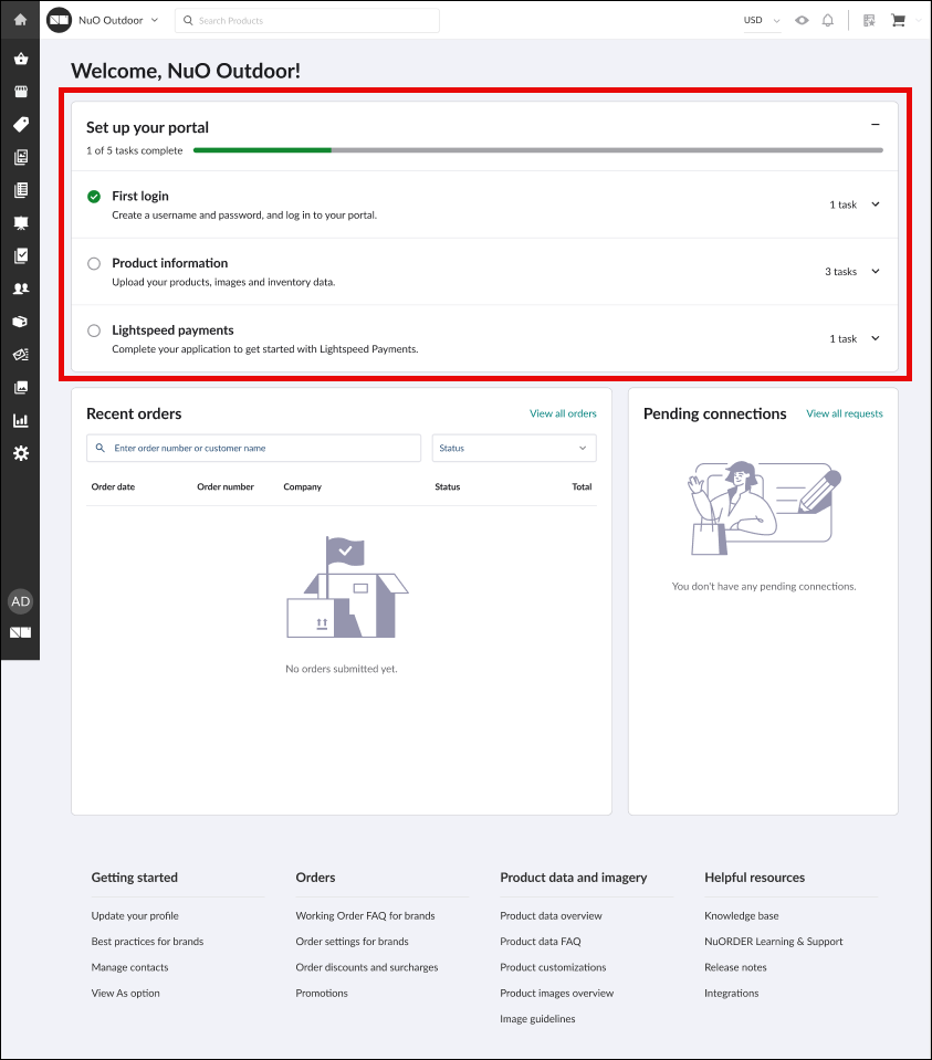 If you’re a Marketplace Connect customer, you can use the onboarding checklist to create your NuORDER portal. You’ll see the onboarding checklist when you sign in to NuOrder.